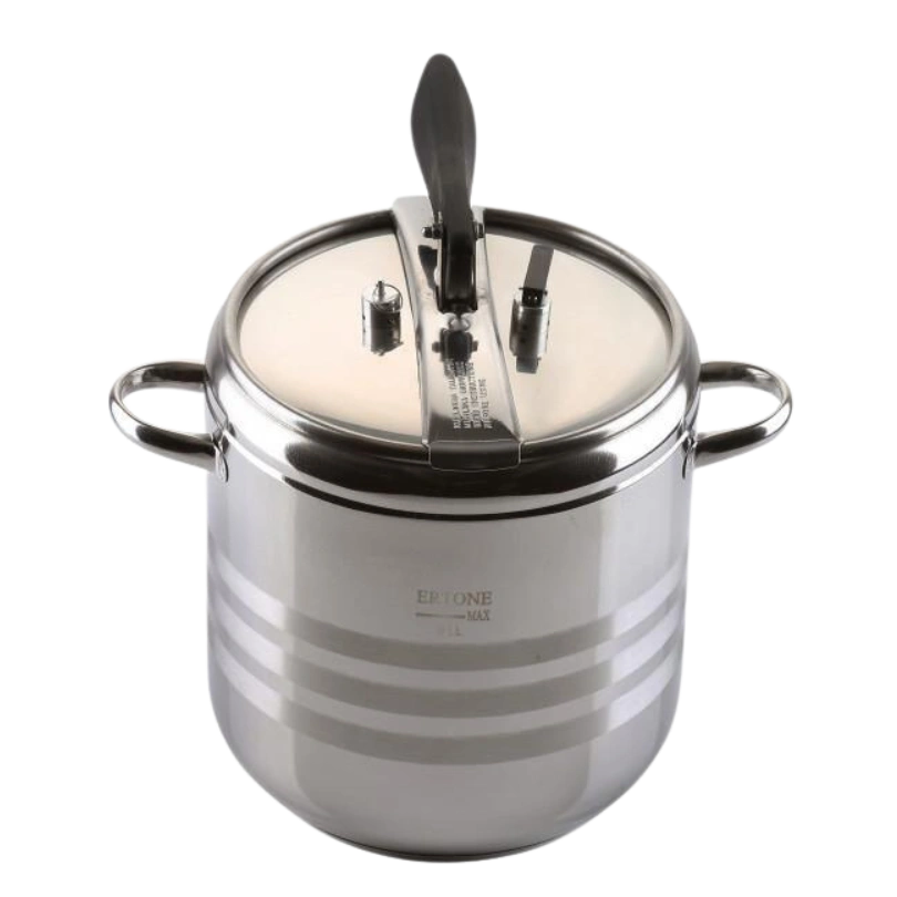 Deze drukpan is vervaardigd uit hoogwaardig roestvrij staal, wat zorgt voor duurzaamheid en een gelijkmatige warmteverdeling. Dankzij het veiligheidsmechanisme en de betrouwbare sluiting kun je veilig koken onder druk.