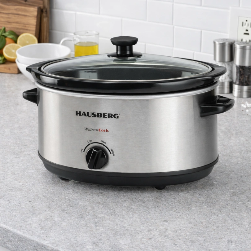 De Hausberg HB‑1301IN Slowcooker is perfect voor het langzaam bereiden van smaakvolle stoofschotels, soepen, vlees- en groentegerechten. Met een inhoud van 6,5 L is deze slowcooker geschikt voor gezinnen of grotere porties.