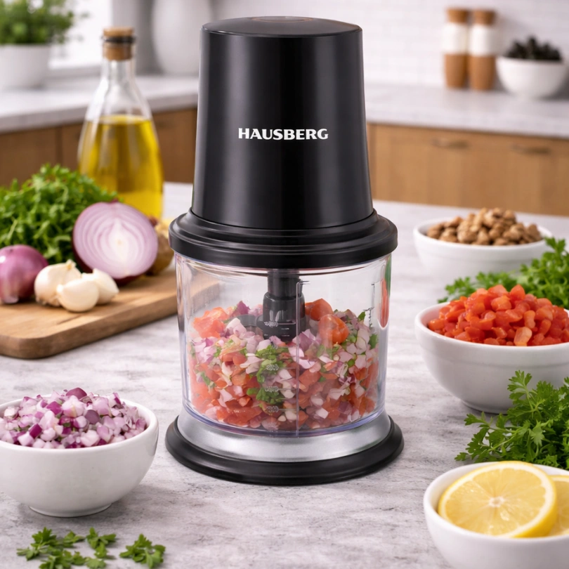 De Hausberg HB‑4502NG Elektrische Hakmolen is ideaal voor het snel en efficiënt hakken van verschillende ingrediënten in de keuken. Met een vermogen van 400W en een inhoud van 500 ml kun je eenvoudig groenten, noten, kruiden, vlees of kaas hakken tot de gewenste consistentie.