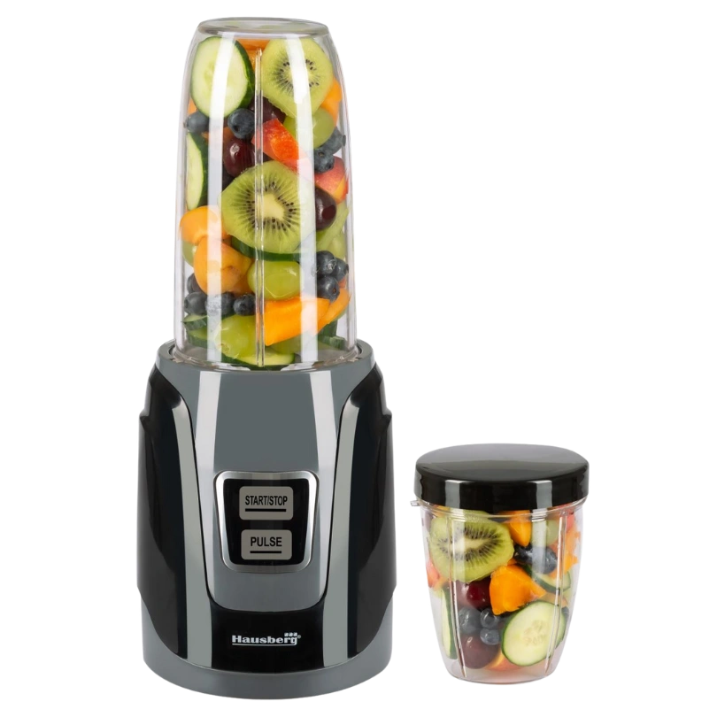 De Hausberg HB‑7675NG Elektrische Blender Set is ontworpen voor snel en efficiënt mixen, pureren en hakselen van diverse ingrediënten. Met een vermogen van 1000W kan deze blender alles aan, van zachte fruitsoorten tot harde noten en ijsblokjes, ideaal voor smoothies, sauzen, dips en soepen.