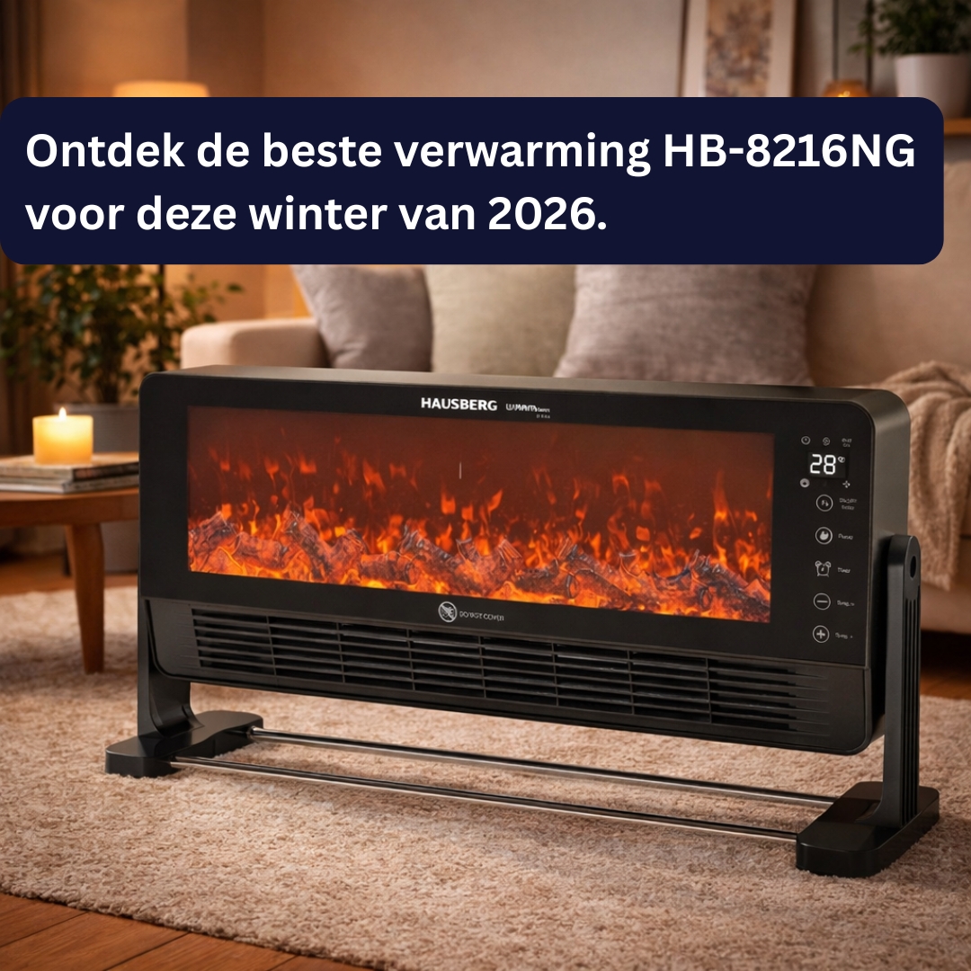 De Hausberg HB‑8216NG elektrische sfeerhaard van 2000W in zwart combineert warmte en sfeervolle verlichting. Krachtig, stijlvol en voorzien van ventilatorfunctie voor extra comfort.